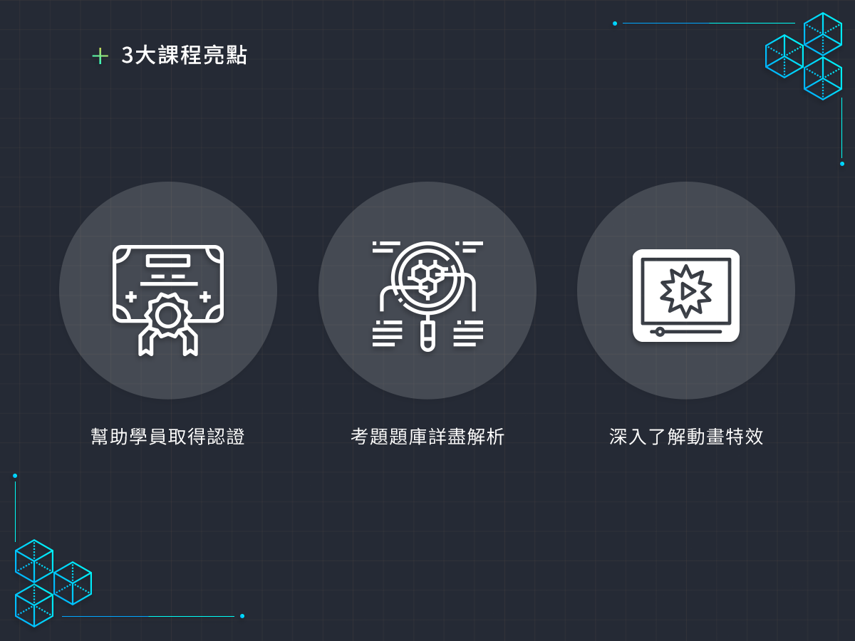 課堂中著重在講解考題,老師將逐步演示相關的考題內容,並且解析每個環節步驟的處理技巧,讓你得以完整了解軟體的各項實用功能,以及各個考題的解題方法。除了在面對認證考試上能更加得心應手之外,也能更深入的理解軟體的應用方式,活用在各種成品的製作上。