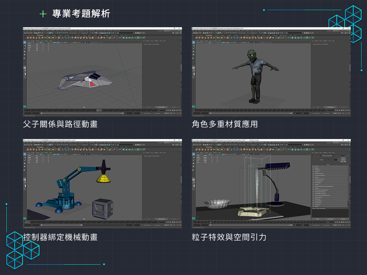 Maya軟體是動畫相關產業時常會使用到的專業創作工具,具備全方位的動畫、建模、模擬、視覺效果、彩現、鏡頭追蹤與合成工具等功能,因此無論你是電影、電視、動畫、廣告從業人員或一般使用者等,都會需要通過Autodesk Maya認證考試,以證明具有Maya專業知識和技能。此項考試,除了提供業界一個審視人才能力的依據,更將提高個人的就業競爭力,創造就業機會,並提升身價。